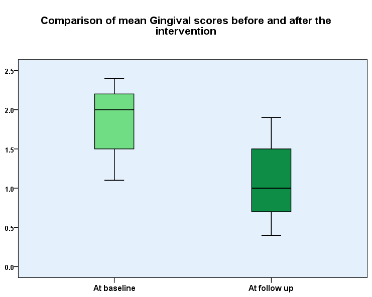 Fig. 2: Comparison of mean gingival scores before and after intervention