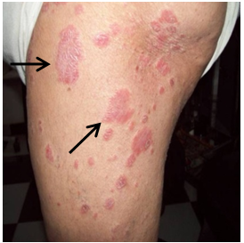 Psoriasis is a chronic inflammatory skin disease-with increased epidermal proliferation related to dysregulation of immune system-estimated to affect around 2-3% of the world population [1-3]. This disease has different types: psoriasis vulgaris, guttate psoriasis, erythrodermic psoriasis, pustular psoriasis and nail psoriasis. The first type is the most common form of psoriasis, which is characterised by red, scaly and raised plaques. Classic psoriasis vulgaris mainly infects specific areas such as elbows, knees and the scalp. It can also remain localized or become generalized over time and the plaques may differ in size [1, 4]. Treatment of psoriasis depends on many factors such as the extent of the disease, its influence on patient's life, and the life perception of patient's illness [4].