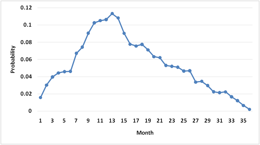 The odds of survival were higher for the individuals treated with T-DM1 compared to treatment with LAP+CAP. The increase in survival exhibited by the group treated with T-DM1 compared to LAP+CAP occurred in the first year of treatment, reaching its peak in month 13. The results mean that 113 additional patients per 1,000 patients would survive when treated with T-DM1. After that period, the odds of survival of the two hypothetical cohorts contracted. The graph in fig. 1 depicts the progression of the difference between survival probabilities according to the selected treatments.