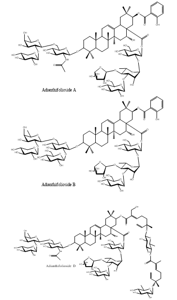 Fig. 8: Structure of Adianthifoliosides A, B and D isolated from Albizia adianthifolia