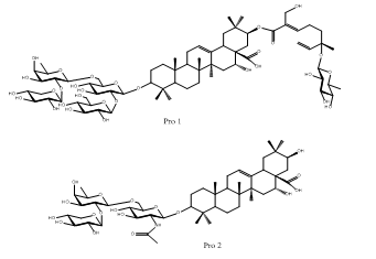 Fig. 9: Structure of two prosapogenins, Pro 1 and Pro 2, isolated from Albizia adianthifolia.