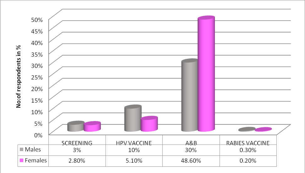 Among all the respondents 500 (50%) females and 444 (44.4%) males answered correctly to the question if they (respondents) knew that causative organism is HPV virus after providing the awareness. Out of 1000 respondents, 459 members belong to the age group of 16-20,188 members belong to the age group of 20-30, 106 members belong to the age group of 30-40, 120 members belong to the age group of 40-50, 117 members to the age group of 50-60 and 10 members belong to the age group of 60-70. Among all these respondents, 405 members to the science background, 595 members to the non-science background. Much the population is seen in non-science background as there is maximum strength in engineering colleges and the degree college. The population of non-science background involves 50 members as homemakers, 53 members as employees, 75 members as daily wages, and 40 members as workers. Employees also include the teaching staff in the educational Institutions where awareness was conducted. The awareness was highly created among the educational institutions and the medical camps and home medication reviews are conducted. Hence homemakers, daily wagers, and some of the workers are involved [16].