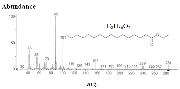 Fig. 1: Mass spectrum of hexadecanoic acid, ethyl ester