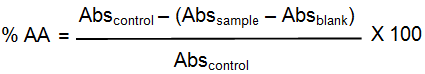 where: Abscontrol is the initial absorbance of the ethanolic solution of DPPH; Abssample is the absorbance of the reaction mixture (DPPH+sample) and Absblank is the absorbance of the blank.