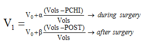 Two additional parameters, α and β, were added to the structural model to take into account blood losses during and after surgery, respectively. The following equations were used: