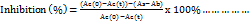 Where, Ac (0) that absorbance of 100% enzyme activity (only solvent with enzyme), Ac (t) that absorbance of 0% enzyme activity (only solvent without enzyme), As that absorbance of test sample with an enzyme, Ab that absorbance of test sample without enzyme.