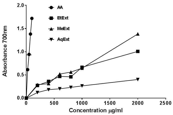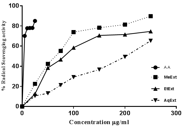 (AA-Ascorbic acid,MeExt-Methanolic extract,EtExt-Ethanolic extract,AqExt-Aquoeus extract)
