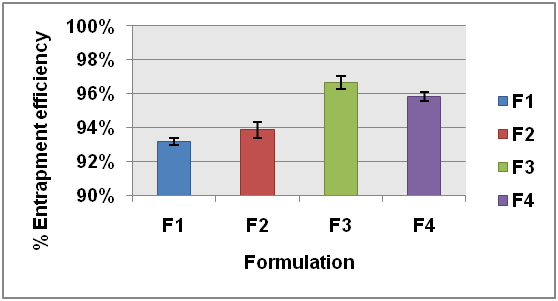 Fig. 2: Result of entrapment efficiency in 0.2 M NaOH. (n= 3; mean value±SD)