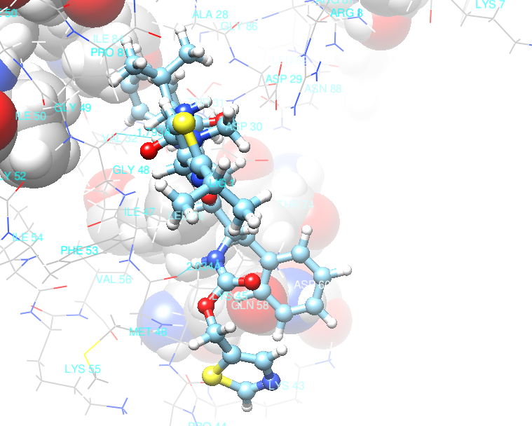 The molecular docking studies were performed on a series of functionalized aza glycine derivatives with different N-acyl substituents and C-terminal amide bonding with 2,4-thiazolidinedione for predicting their binding affinities towards target proteins, related to the pharmacological potentiality of azapeptides (protease and caspases) and 2,4-thiazolidinediones (diabetes mellitus). The target proteins were obtained from the protein data bank (PDB ID: 1A30, HIV-1 protease; PDB ID: 1BMQ, caspases-1/Interleukin-1 beta converting enzyme (IL-1) and PDB ID: 2PRG, PPAR-γ) and molecular docking was performed using http://www. swissdock. ch. Swiss Dock an online web service developed by Aurellen Grosdidier, Vincent Zoete and Olivier Michielin performs EADock based docking simulations. The application of EADock was illustrated by successful docking of Arg-Gly-Asp (RGD) cyclic pentapeptide on the αVβ3 integrin [12].