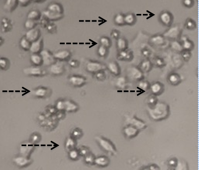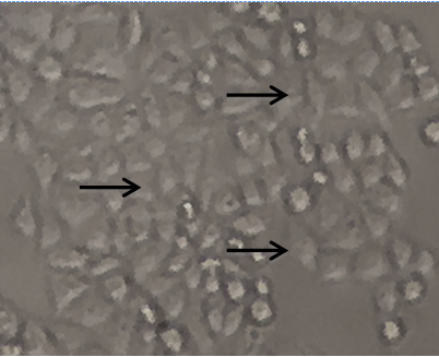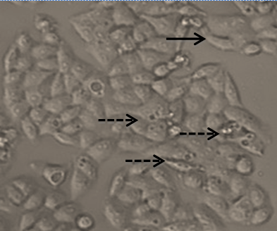 According to Teng et al. (2005) [22], compounds with IC50 values below 50 µM had a potent cytotoxicity against cancer cells, meaning brazilein had cytotoxic effect in MCF-7/DOX cells and brazilein performed as a potent chemopreventive agent. This effect was supported by the morphological changing such as cell nuclei appear shrunken, irregular morphology and some cells undergo membrane blebbing.