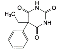 Phenobarbitone (fig. 2) is5-ethyl-5-phenyl-2,4,6(1H,3H,5H)-pyrimidinetrione. Phenobarbitone belongs to a class of drugs known as barbiturate anticonvulsants.It works by controlling the abnormal electrical activity in the brain that occurs during a seizure. Phenobarbitone acts on GABA receptors, increasing synaptic inhibition. This has the effect of elevating seizure threshold and reducing the spread of seizure activity from a seizure focus. Phenobarbital may also inhibit calcium channels, resulting in a decrease in excitatory transmitter release. The sedative-hypnotic effects of phenobarbitone are likely the result of its effect on the polysynaptic midbrain reticular formation, which controls CNS arousal[5-7].