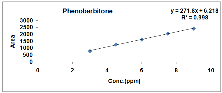 The sample solution was prepared at working concentration as per the test method and analysis was performed. The sample solutions of phenytoin sodium and phenobarbitone injected 6 times into the column. The results of repeatability are as tabulated in table 3. The average was taken, and percent relative standard deviation (%RSD) calculated and reported. % RSD values were found within the limits, and the method was found to be precise.