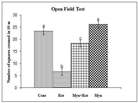 | Rotenone | 11.31±0.21b | 6.42±0.32b | 12.34±0.32b | 1.09±0.11b |
