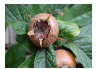 known as the medlar or common medlar (Family Rosaceae) is a large shrub or small tree. The fruit has been cultivated since Roman times and is unusual in being available in winter and in being eaten when “bletted” (browned by rot) [4]. It is eaten raw and in a range of dishes. It may have been cultivated for as long as 3000 years. Until recently, Mespilus germanica was the only known species of medlar [5]. However in 1990, a new species was discovered in North America, now named Mespilus canescens. M. germanica pomes are one of the few fruits that become edible in winter, making it an important tree for gardeners who wish to have fruit available all year round. Its fruits are hard, acidic and high in bitter tannins [6].
