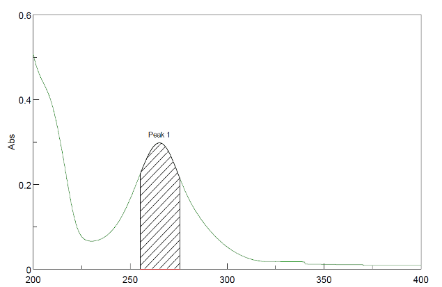 Fig. 2: λmax of DRV For the both methods (Absorption maxima method and AUC method), the coefficient of correlation (r), slope and intercept values are given in Table.1