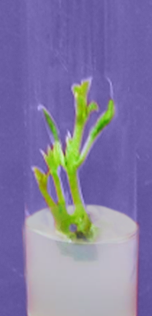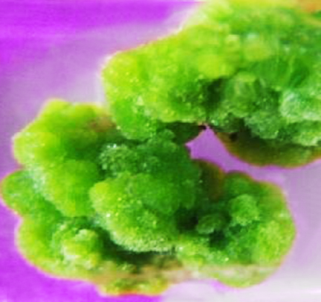Higher concentrations of 2,4-dichlorophenoxyacetic acid (2,4-D)and kinetin decreased callogenic potentiality of the explants and which in turn the pigmentation (fig. 3). Light is a factor regulating the green callus initiation with the protocorm-like body at 25 °C and 12 h photoperiod with an irradiance of 60±2 μmol/m2/sec.