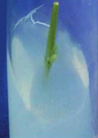 Sterilization using 0.1% mercuric chloride (HgCl2) for 2 min was effective to establish explants with least contamination and showed 95% establishment on the medium. The leaf and nodal explants inoculated on murashige and skoog (MS) medium fortified with various combinations of 2,4-dichlorophenoxyacetic acid (2,4-D)and benzylaminopurine (BAP) for the induction of callus. After 30 d, green compact calli (fig. 1 a,b,c,) were proliferated remarkably from leaf explants than node (fig. 2a and b).