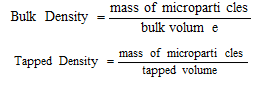 Hausner ratio of microspheres was determined by comparing the tapped density to the bulk density using the equation: