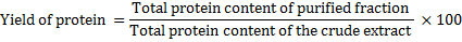 Table 3: Purification profile of a lectin from Pimenta dioica, the table includes data expressed as mean±SD where the number of experiments was three (n=3)