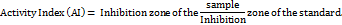 All values are mean±SD; n=3; IZ= Inhibition zone in mm (mean value; include 6 mm diameter of disc), AI= Activity Index (IZ developed by extract/IZ developed by standard), (-) = No activity