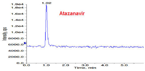 The main objective of present research article was to develop a selective, sensitive, rapid and accurate method using LC-MS/MS technique to achieve efficient separation between atazanavir and BOC epoxide. The developed method was validated as per ICH guidelines [19] in terms of specificity, limit of detection (LOD), limit of quantification (LOQ), precision, linearity, accuracy and robustness.