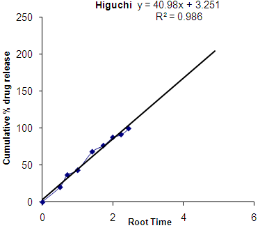 2. Cumulative percentage drug released Vs Square root of time (Higuchi’s plots)