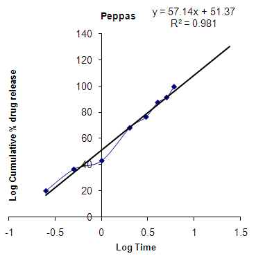 4. Log percentage drug released Vs Log time (Peppas plots)