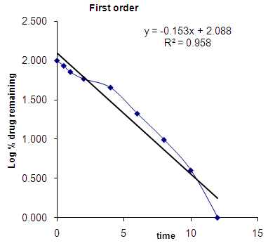 3. Log cumulative percentage drug remaining Vs Time (First order plots)