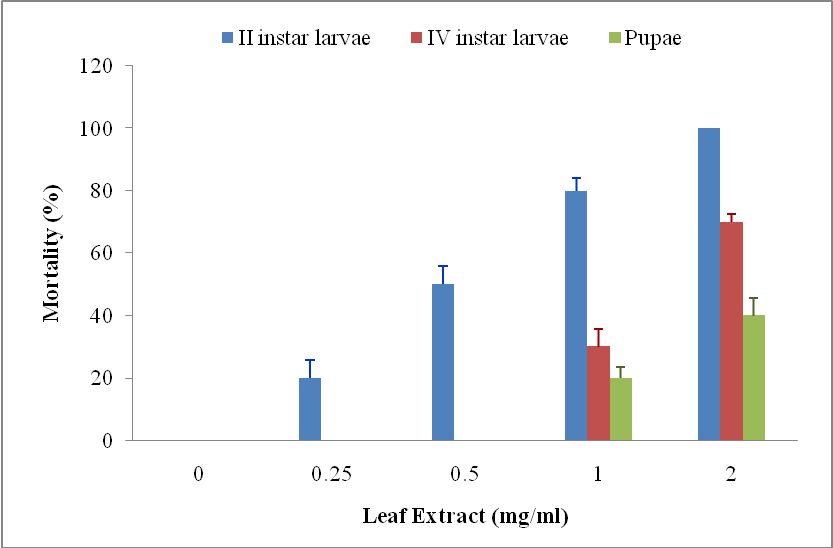 Fig. 4: Mortality of larvae and pupae at different concentrations of leaf extract