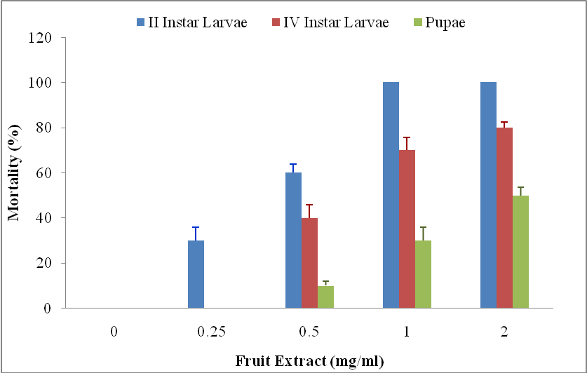Fig. 5: Mortality of larvae and pupae at different concentrations of fruit extract