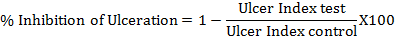 For this activity, the method followed was Pylorus-ligation. The animals weighing 100-150 gms were fastened overnight, anaesthetized, incised 1 cm long in abdomen below the sternum. The stomach was exposed and a thread was passed round pyloric sphincter, a knot was tied. Abdomen was closed with sutures and animals were kept in separate cage, allowed to recover.