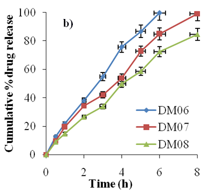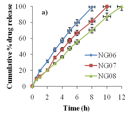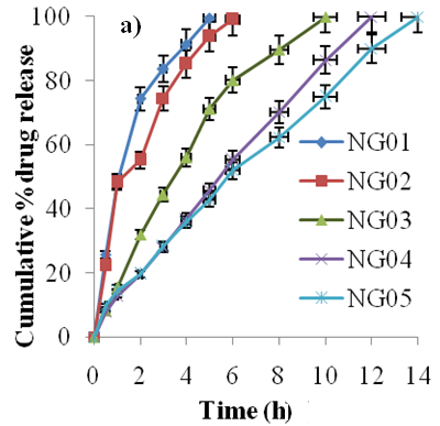 As less concentration of polymer is required in formulation NG07 to retard the drug release for 12 h, NG07 was considered as promising formulation prepared with natural gum (neem gum) when compared with the GFT prepared with other natural gums. Hence, neem gum can be suggested as a controlled release polymer for the development of dosage formulations in the design of GRFDDS.
