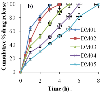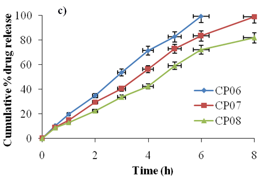 The analysis of drug release is an important mechanism but, complicated process and is practically evident in the case of matrix systems as a model dependent approach. The dissolution data was fitted into zero [17], and first order for establishing drug release kinetics [18, 19], and Higuchi diffusion model [20], Hixson-Crowell erosion model for establishing drug release mechanism [21].