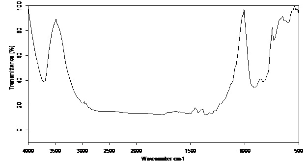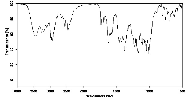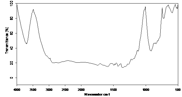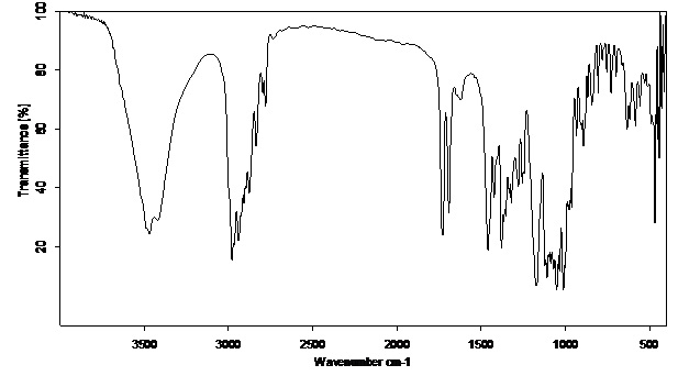 The FTIR spectra of neem gum showed the characteristic N-H secondary amines stretch at 3702 cm-1, alcoholic O-H stretch at 2988 cm-1, C-O carboxylic acid anhydride stretch at 1763 cm-1, C=C aromatic stretch at 1494 cm-1, C-H alkanes stretch at 1428 cm-1and 1365 cm-1 and C-H alkenes stretch at 911 cm-1.