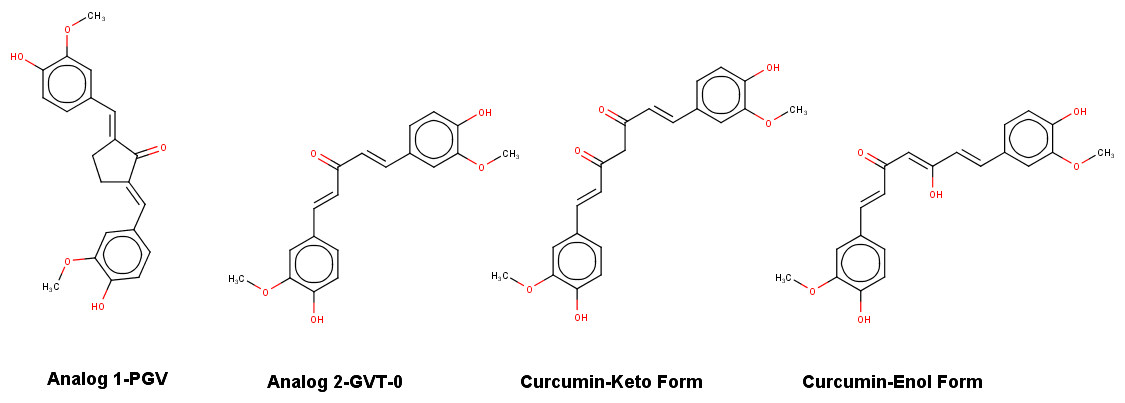 | Curcumin-Keto | Curcumin-Enol | PGV | GVT-0 | |