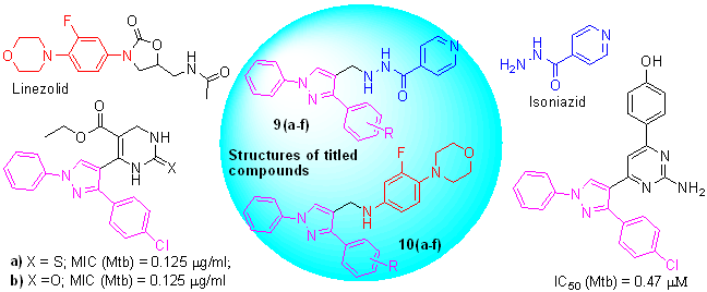 Objective: Synthesis of new 1, 3-diphenyl pyrazole derivatives 9(a-f) and 10(a-f) using molecular hybridization approach and evaluation of their antitubercular and cytotoxic studies.