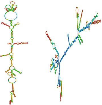 The gene sequence was transcribed to RNA sequence to identify the rRNA secondary structure using the RNAfold server from Vienna RNA website [20]. RNA secondary structure can be predicted by free energy minimization with nearest neighbor parameters to evaluate stability [21]. It was used to predict the minimum free energy (MFE) secondary structure of single sequences using the dynamic programming algorithm proposed by Zuker and Stiegler [22] and equilibrium base-pairing probabilities were are calculated.