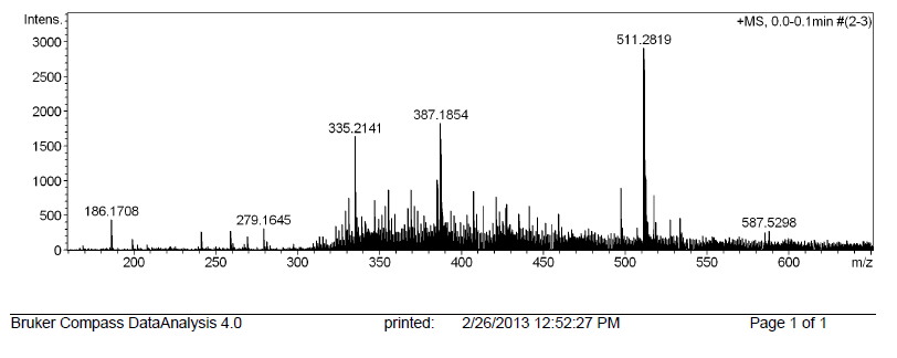 The ESI-MS analysis of the above samples that were subjected to HPLC was performed on Bruker micrOTOF-Q II 10348, mass spectrophotometer equipped with an ESI source in a positive ion mode. High purity nitrogen gas was used as collision, nebulizer and auxillary heated gas. The ESI conditions were set as follows: spray voltage,+4500V; nebulizer gas flow, 4.0 l/min; temperature, 180 °C.