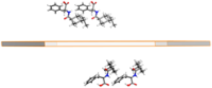 Form MS exists in tetragonal crystal system with P-4 space group (fig. 6). Carbonyl oxygen of amide group bifurcates to form hydrogen bond with methine–CH (attached to cyclohexyl ring) and methylene–CH (attached to benzene ring) to generate C17-H17…O3 and C7-H7A…O3. Another homosynthon (C13-H13A…O1) is formed by the involvement of–CO of amide group and–CH of cyclohexyl ring. The molecules are oriented like a rippled bilayer in which all the hydrogen bonds are sandwiched (along a axis). When viewed from c axis, the molecules seem to form zigzag antiparallel layers.