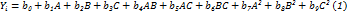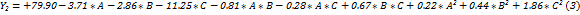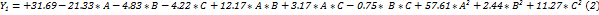 A, B and C(Main effects)were the average results of changing one factor at a time from its low to high levels by keeping other two constant.AB,AC and BC(Interaction terms)show,how the response changes when two factors are simultaneously changed.A2,B2andC2(Polynomial terms)were usedtoinvestigatenonlinearity.