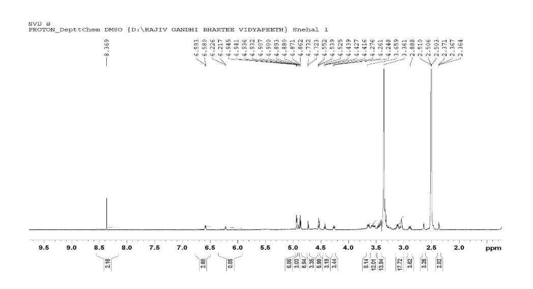 Fig.9:1H nuclear magnetic resonance analysis:signals between 3.659 and 4.932 showing heptasaccharide nature of the EPS