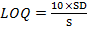 Where, SD is the standard deviation of y-intercepts of the calibration curves; S is the mean slope of six calibration curves. [13-15]