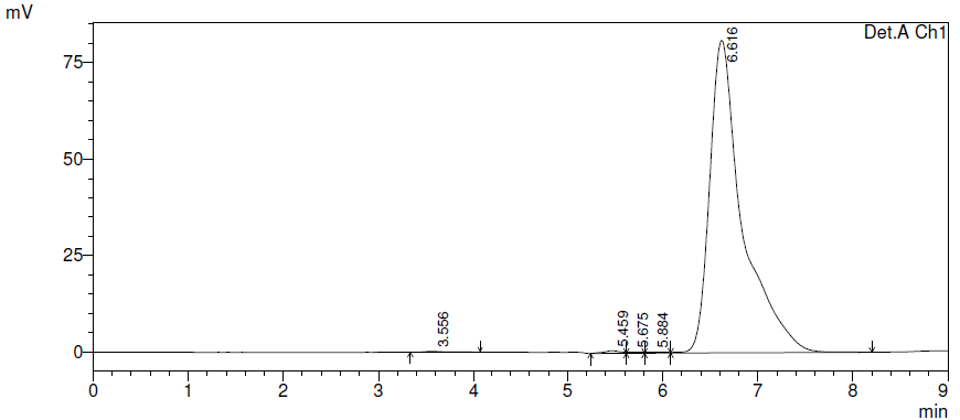Finally, mobile phase methanol: water (91:9 v/v) at the flow rate 0.5 ml/min was selected with UV detection at 249 nm. The retention time of atazanavir sulphate was found to be 6.61 min.