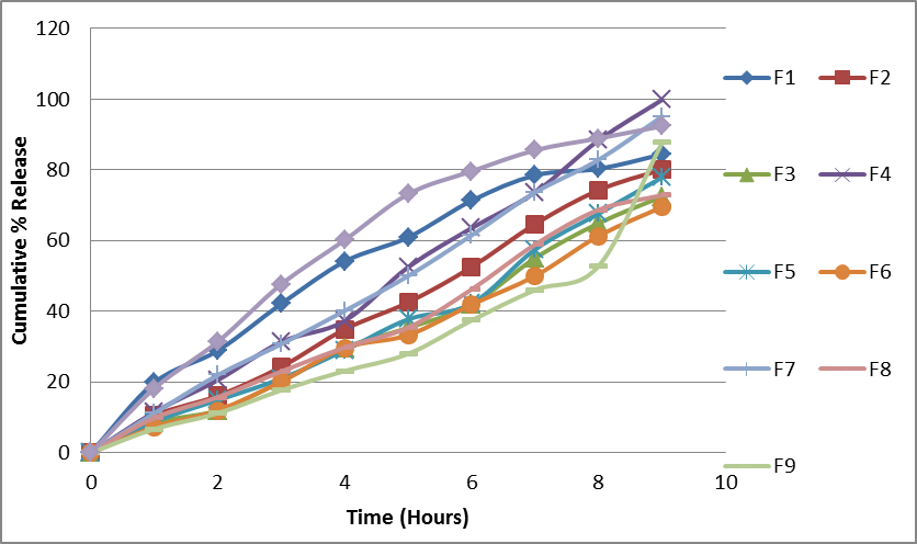 Fig. 8: Graphical representation of In vitro dissolution profile of formulations (n=3)