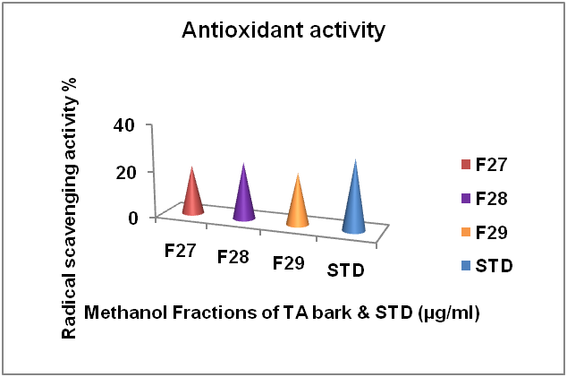 As a result, we collected three fraction of TA bark on the basis of their antioxidant property such as F27, F28, F29 and they were showed good antioxidant property shown in fig. 1.