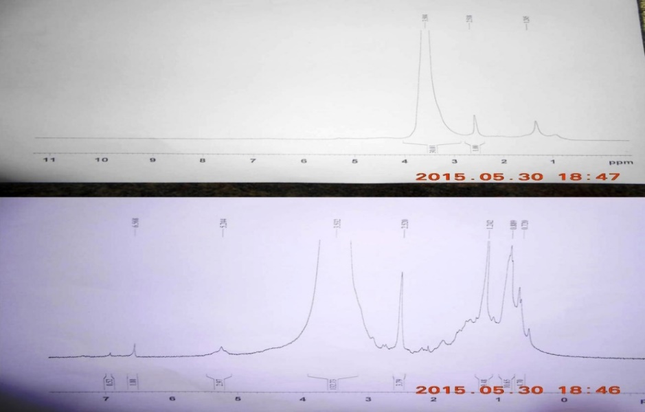 1H NMR spectra of methanol fraction (F28) of bark of TA was recorded using a Bruker AMX-400 (400 MHz) instrument and the spectra were referenced to the deuterated solvent (D6DMSO) signals and chemical shifts were recorded as δ values. The result graph was compared with the reference chart and possible functional group present in the plant were determined [15].