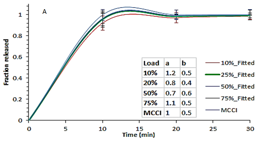 The Weibull model with two parameters was employed to fit the fraction of drug released: