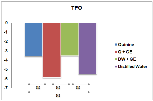 Q: quinine, GE: guava extract, DW: distilled water, NS: not significant