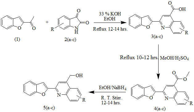 Scheme I: Synthesis of substituted [2-(1-benzofuran-2-yl) quinolin-4-yl] methanol 5(a-c)