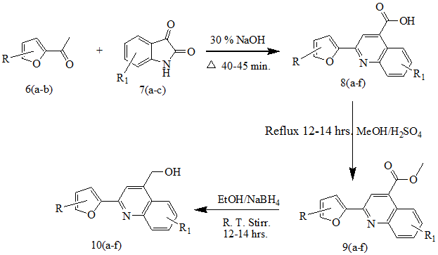 The synthesis of substituted [2-(1-furan-2-yl) quinolin-4-yl] methanol 10(a-f) is similarly to the synthesis of analogues 5(a-c).